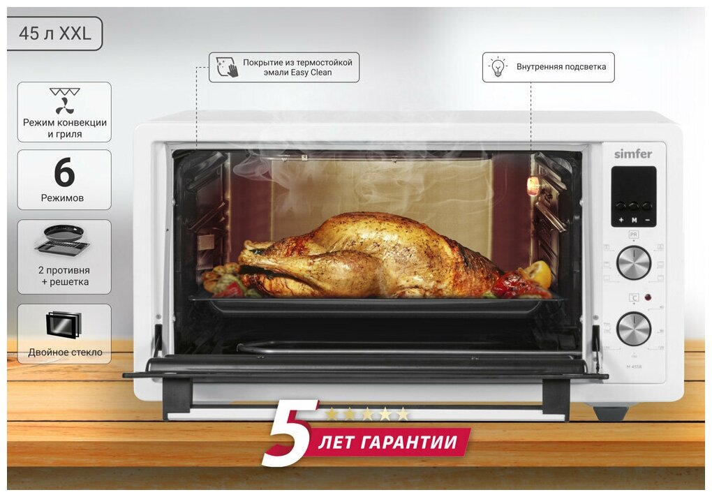 Мини-печь Simfer M4558 серия Albeni Plus Comfort, 6 режимов, утапливаемые ручки, конвекция, гриль