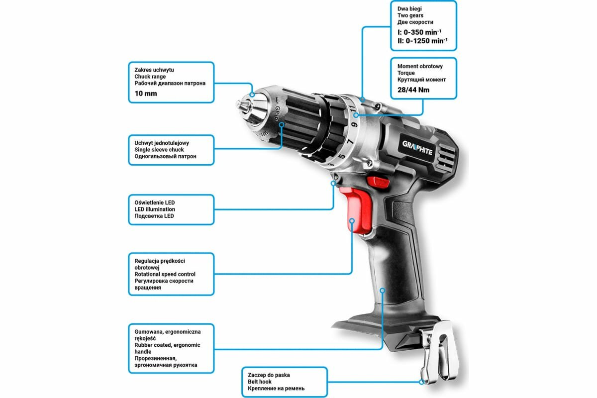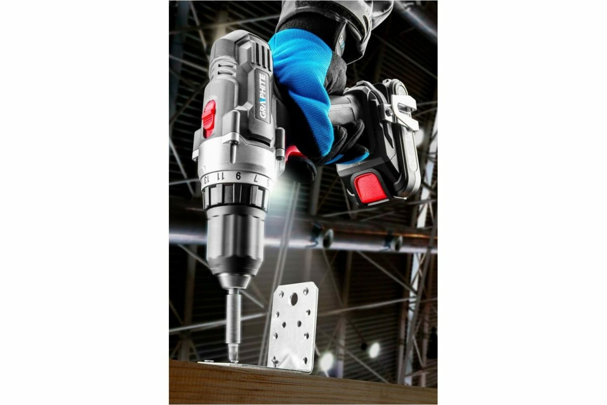 Дрели и шуруповерты GRAPHITE Дрель-шуруповерт аккум Energy + 18V Li-Ion, самозажимной патрон 10 мм,/без АКБ и ЗУ/ 58g000
