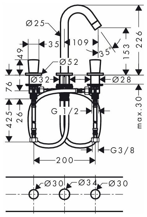 | Диаметр отверстий для установки | 34 мм |