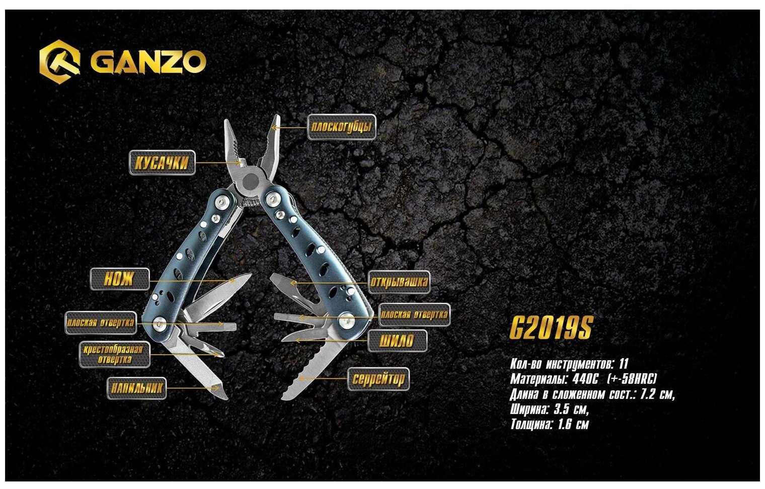 Мультитул Ganzo, складной. G2019S многофункциональный 11 в 1 серый
