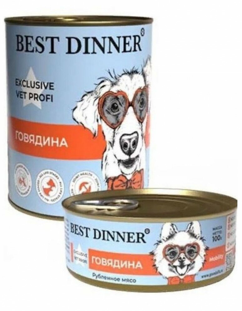 Влажный консервированный корм Best Dinner Бест Диннер для собак Exclusive Mobility, говядина, 340 гр. по 12 шт.