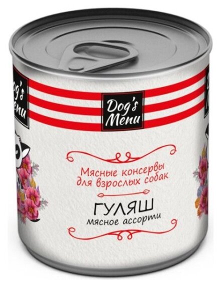 Консервы Dog`s menu для взрослых собак гуляш мясное ассорти 750г