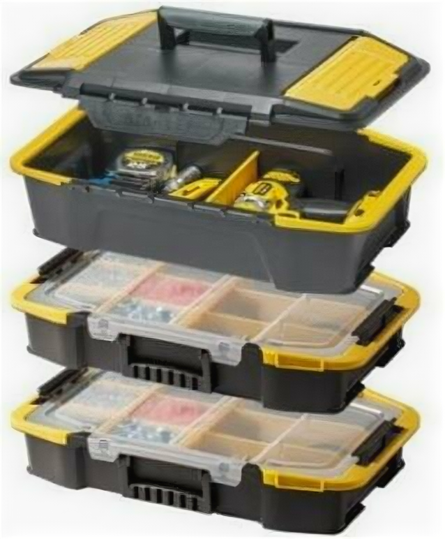 Лучшие цены. Материал изготовления: пластик; Количество карманов: нет; Органайзер: внутренний; Дополнительные ящики, полки, лотки: съемные; Количество замков: 1; Петля для навесного замка: есть; Прочие особенности и свойства: Корпус ящика для инструмента Stanley CLICK & CONNECT STST1-71964 изготовлен из пластика;;, Размер, форма и пропорции, оптимальные для легкого доступа к находящемуся внутри ящика ручному и электроинструменту;, Возможность соединения нескольких модулей для оптимизации хранения;, Переставные. Магазины в вашем городе.