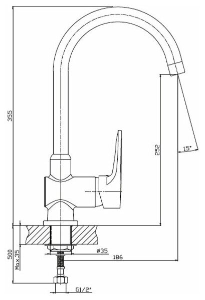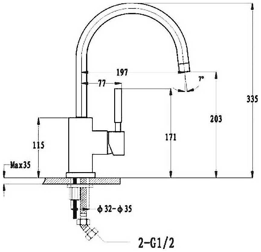 GRANFEST Смеситель для кухни U-обр. D-35мм топаз арт
