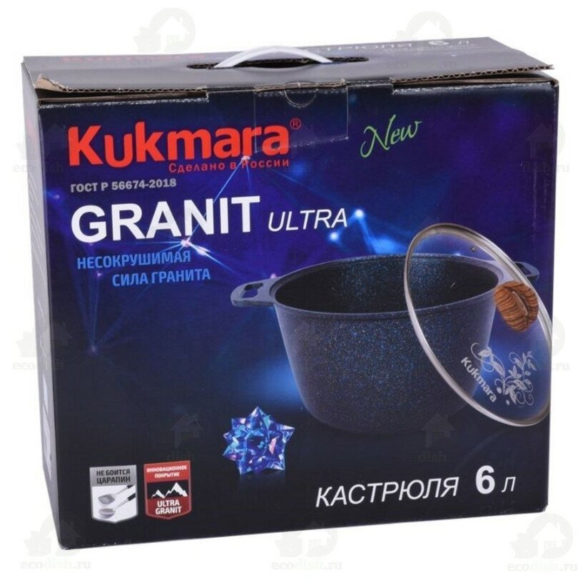 Кастрюля KUKMARA Granit Ultra кгг62а, объем 6 л.