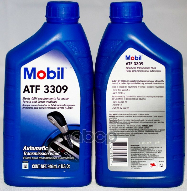 Mobil^Atf 3309 1qt Масло Mobil Atf 3309 0,946l, Ford Wss-M2c924-A, Toyota Jws 3309, Toyota T-Iv, Vw G Mobil арт. ATF 3309 1qt