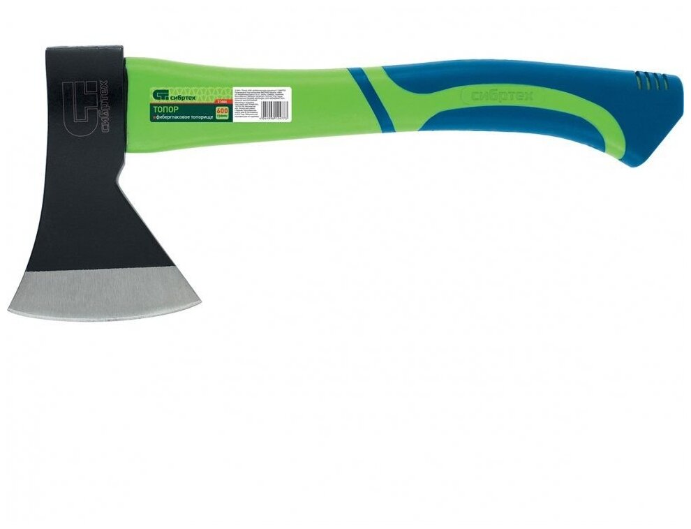 Топор, 600 г, фибергласовое топорище, синий/зеленый // Сибртех