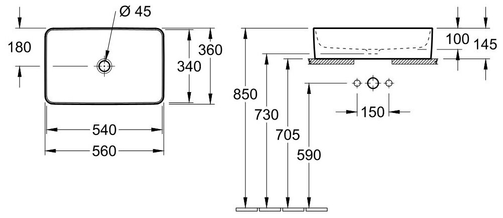 Лучшие цены. Villeroy & Boch Collaro Раковина для установки на столешницу, 560 x 360 x 145 mm, Альпийский белый CeramicPlus, без перелива, нешлифованный Номер артикула: 4A2056R1 Монтаж / тип монтажа: Накладная версия Указания по монтажу: Рекомендация: монтаж с минимальным расстоянием между задней стенкой раковины и стеной: 50 mm Комплект поставки: 1 x раковина, устанавливаемая на столешницу 1 x крепежный комплект 1 x шаблон для выреза Указания для заказа: Не запираемый клапан стока заказывайте отдельно. Магазины в вашем городе.