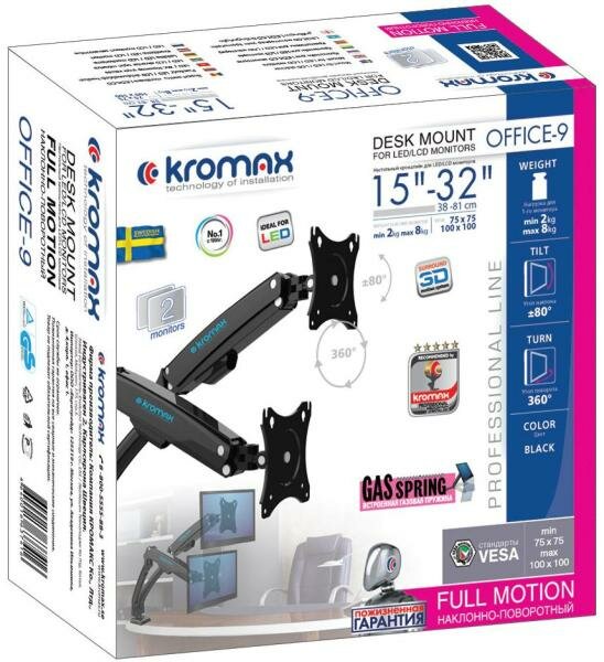 KROMAX OFFICE-9 черный кронштейн для мониторов 15"-32" 12 018 ₽ Подробнее