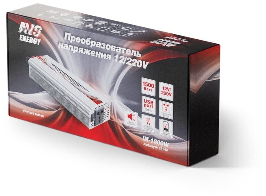 Лучшие цены. Автомобильный инвертор AVS IN-1500W в любых условиях подключит и компьютер и бытовую технику! Сочетает в себе розетку 220В и USB разъем, что позволяют одновременно работать с различными типами устройств - GPS навигаторами, КПК, ноутбуками. Находясь в автомобиле в дальней дороге, вы всегда сможете зарядить мобильный телефон, MP3-плеер и подключить любые бытовые устройства. Магазины в вашем городе.