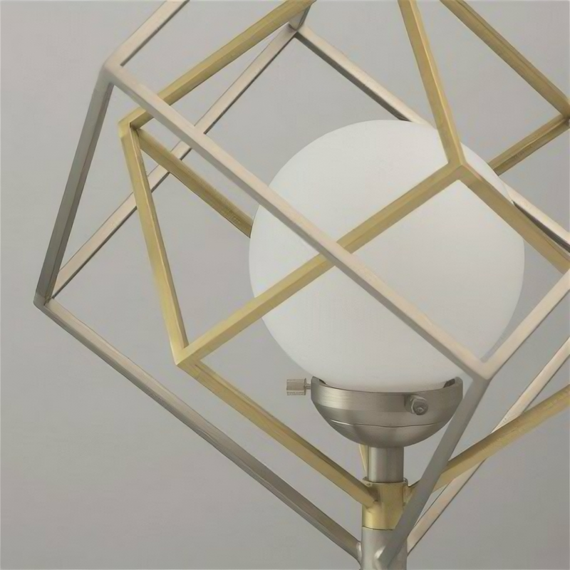 Лучшие цены. Минималистичный и, вместе с тем, очень оригинальный дизайн светильника будет отлично смотреться в современном интерьере. Металлическое основание цвета матового никеля создает гармоничный дуэт с оригинальным двойным плафоном: его внутренная часть сферической формы выполнена из белого стекла и окутана замысловатым переплетением графичных металлических элементов. Они представлены в комбинации двух оттенков - матового никеля и бронзы. Магазины в вашем городе.