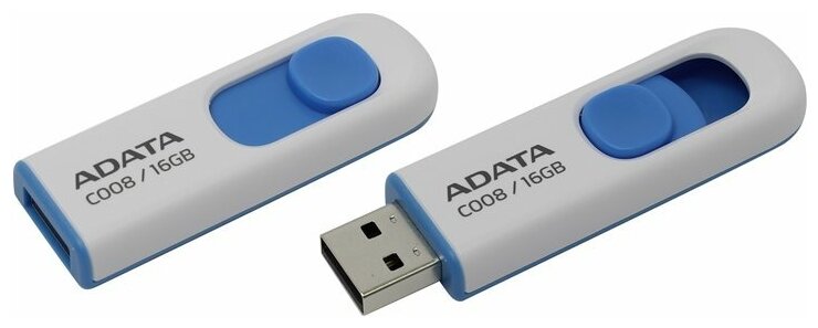 USB-флешки Накопитель ADATA 16GB Classic C008 белый/синий USB 2.0 Flash Drive (AC008-16G-RWE)