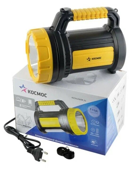 Космос фонарь-прожектор 2005W_Ex (акк.4V2Ah) LED 5W(300lm) +10W(380lm), жел./пласт 3 реж.з/у 220/12в (арт. 646375)