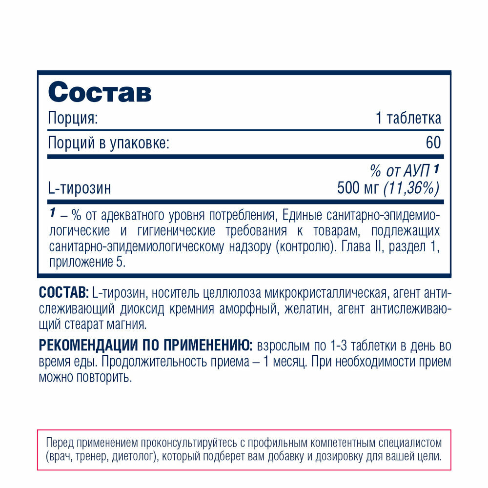 Аминокислоты Be First Tyrosine - 60 таблеток, ---