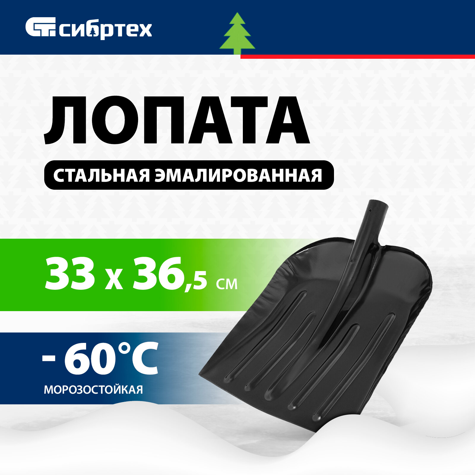 Лопата для уборки снега стальная эмалированная, 330х365 мм, без черенка, Россия// Сибртех