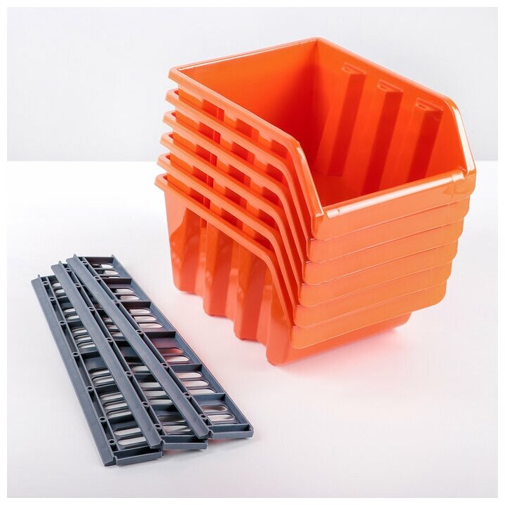 Набор средних лотков BLOCKER для метизов с планкой 6 шт оранжевый (Оранжевый)