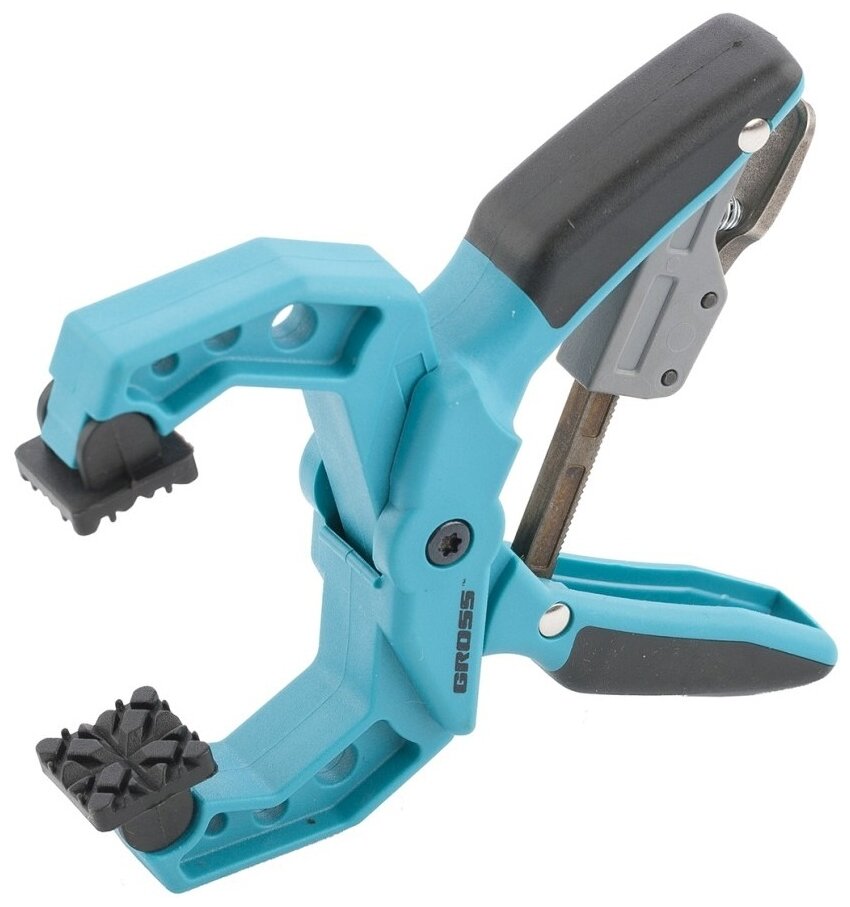 Струбцина клещеобразная GROSS 20803 2–1/4/58 мм пластиковый корпус,храповый механизм жесткой фикс