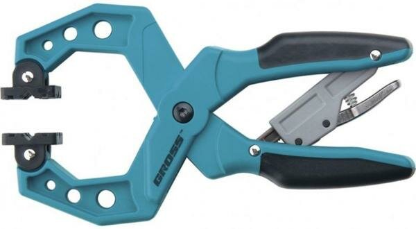 Лучшие цены. Тип: Струбцина; Количество инструментов в комплекте: 1; Материал изготовления: высокопрочный пластик; Поворотный механизм: нет; Быстрозажимной механизм: да; Электроизолированные рукоятки: да; Рабочие размеры: ширина 38 мм; Прочие особенности и свойства: Струбцина клещеобразная торговой марки GROSS предназначена для фиксации и удержания деталей и заготовок различных конструкций диаметром до 38 мм. Прижимные накладки на шарнирах позволяют размещать деталь под разными углами. Магазины в вашем городе.