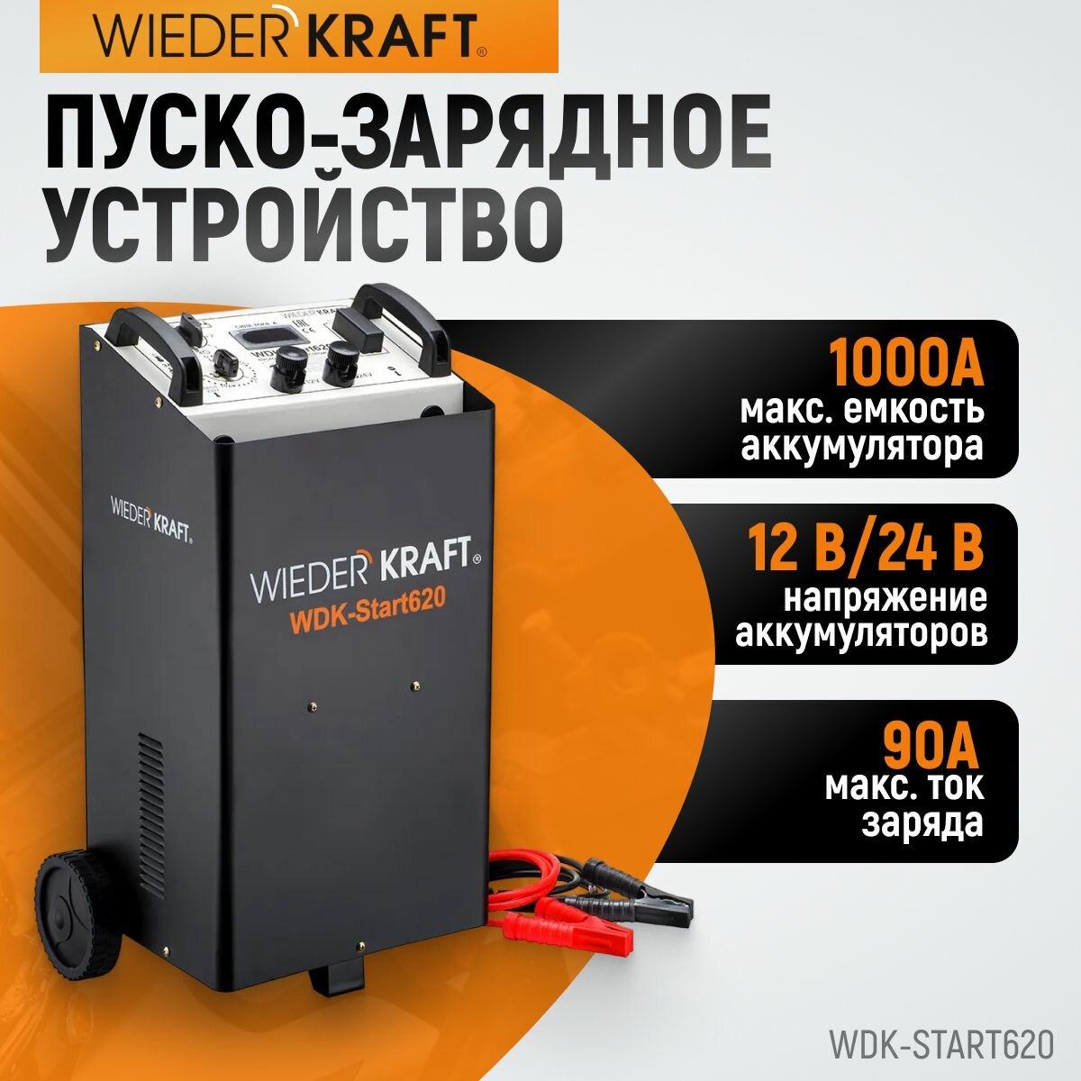 Пуско-зарядное устройство WIEDERKRAFT WDK-Start620 12/24в, 220в,Вес 28кг макс. пуск. ток 620 А.