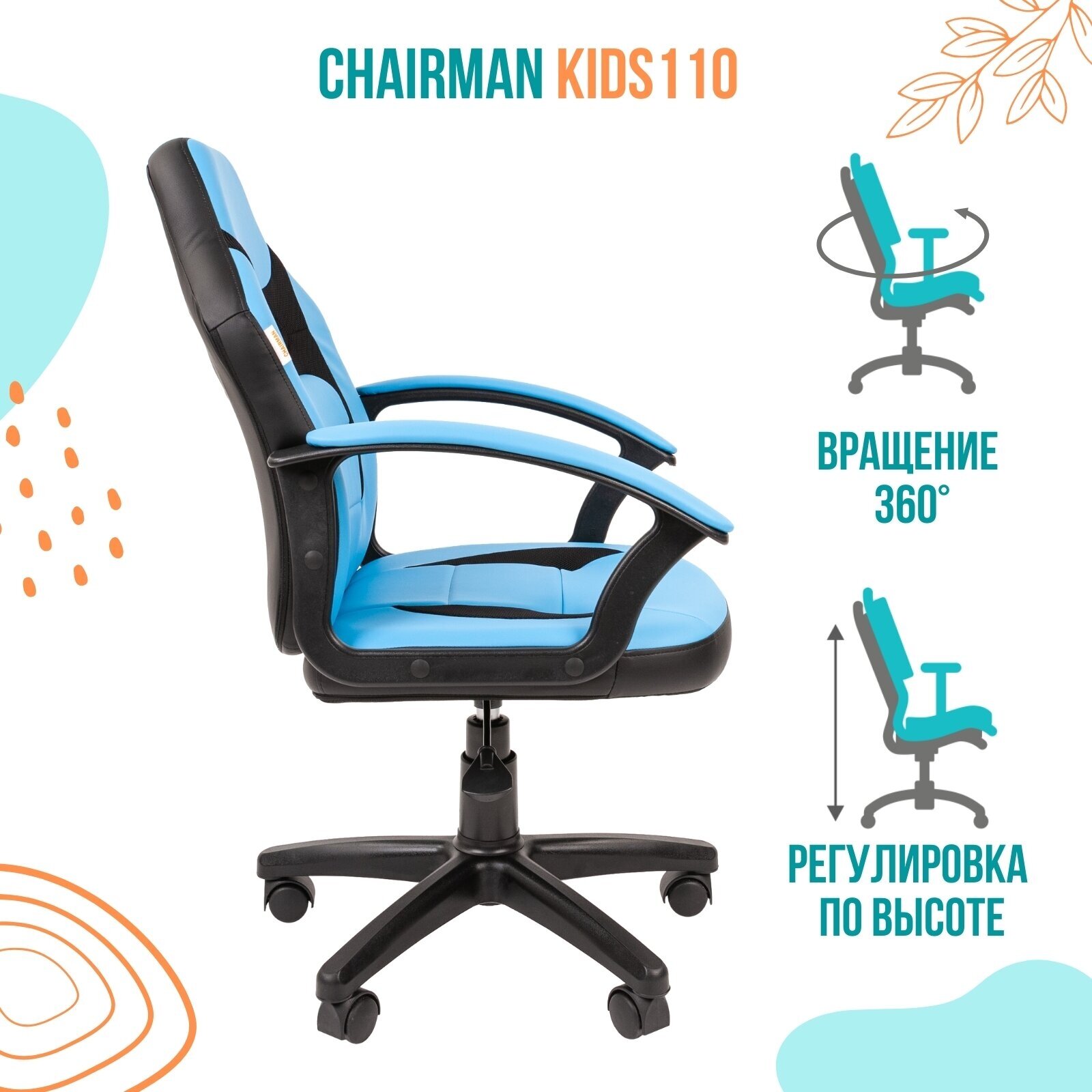 Кресло детское Chairman Kids 110, PL черный, экокожа голубая/ткань TW черная, регулир. по высоте 9 229 ₽ Подробнее