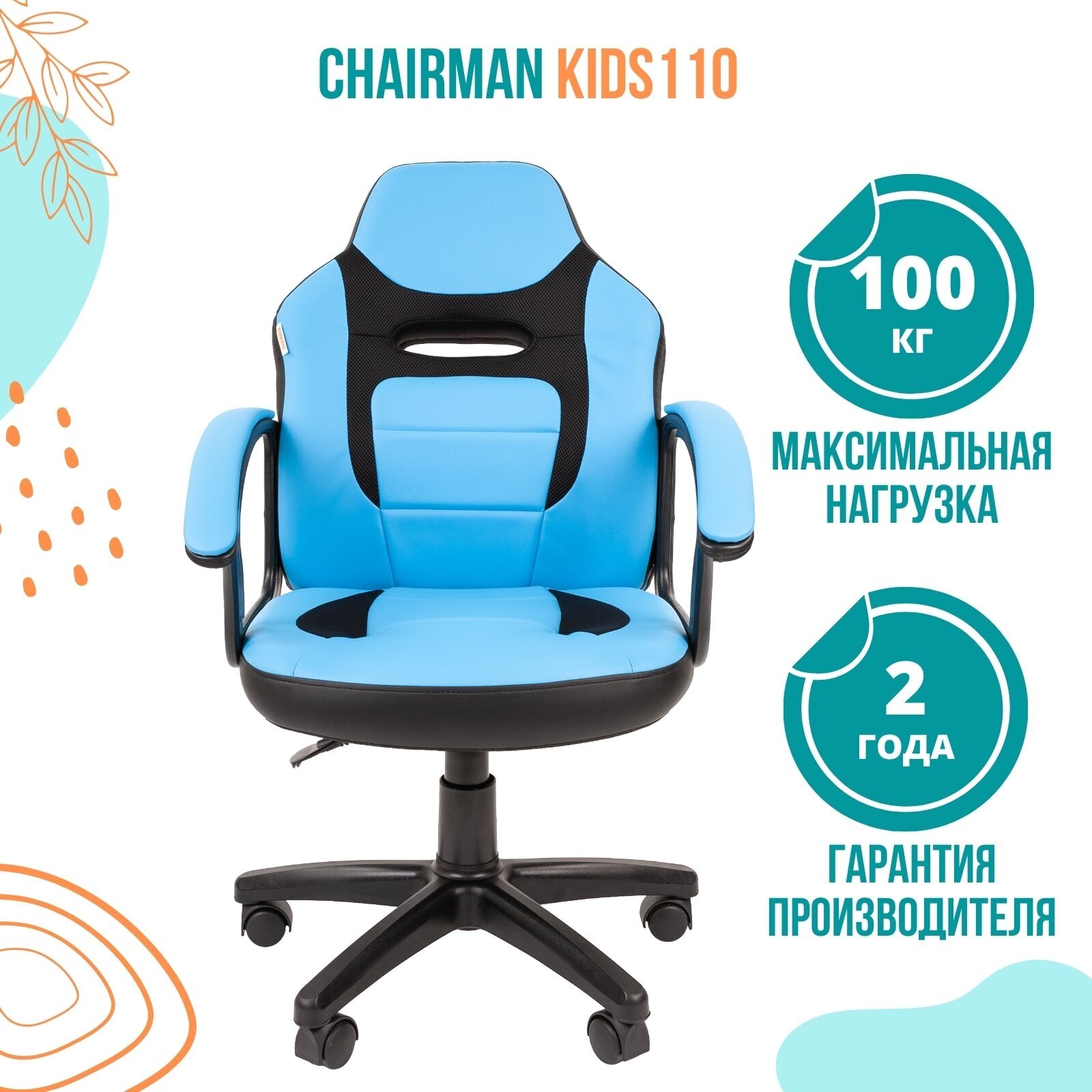Детское компьютерное кресло CHAIRMAN KIDS 110, экокожа/ткань, черный/голубой