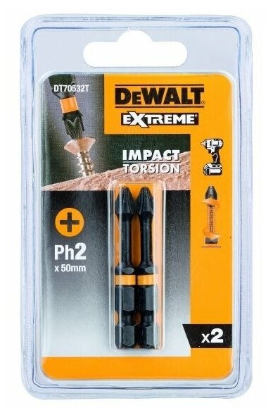 Биты и торцевые головки Биты ударные DEWALT DT70532T, IMPACT Torsion, (Ph2, 50 мм, 2 шт.)
