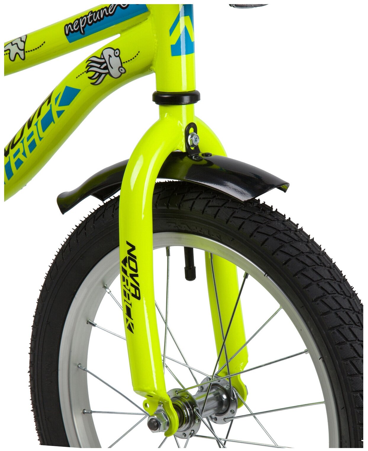 Велосипед NOVATRACK 16" NEPTUNE 2020, салатовый, тормоз нож, крылья корот, полная защ.цепи