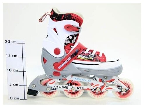 Лучшие цены. Роликовые коньки Trans Roller уникальны тем, что могут подстраиваться под размер ноги с 40 по 43-й. Специальное кнопочное устройство позволяет уменьшить или увеличить размер по мере роста ребенка или для того, чтобы одолжить их покататься брату или другу. Серо-красная расцветка с добавлением черногои белого смотрится очень выигрышно и стильно. Конструкция коньков обеспечивает хорошую управляемость и боковую поддержку ноги. Магазины в вашем городе.