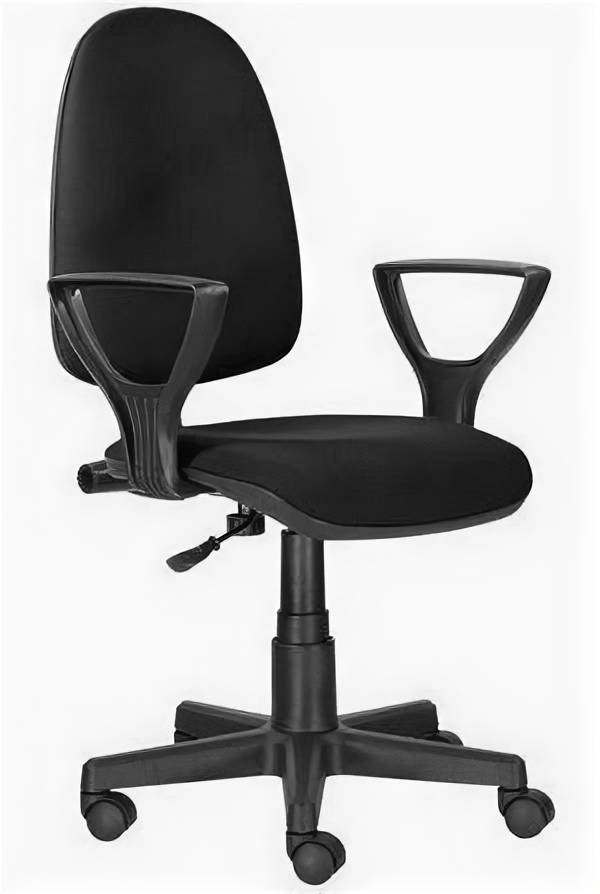 Лучшие цены. Тип: Кресло; Материал обивки: ткань; Цвет обивки: чёрный; Подлокотники: да; Механизм качания: да; Регулировка по высоте: есть; Основание: крестовина с колёсиками; Ограничение по весу: до 90 кг; Дополнительно: Доступное кресло с улучшенной эргономикой спинки. Основание сиденья - фанера. Модель оснащена механизмом «перманент-контакт», который позволяет регулировать наклон, высоту спинки и глубину посадки. Магазины в вашем городе.