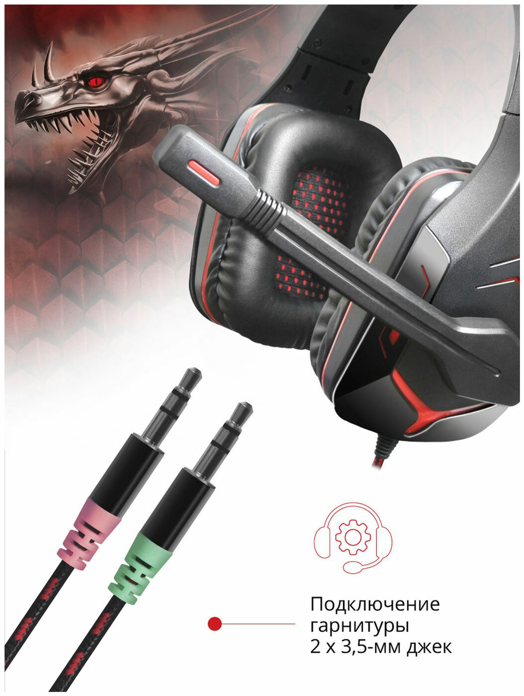 Наушники Defender Excidium игровые, с микрофоном, чёрно-красный