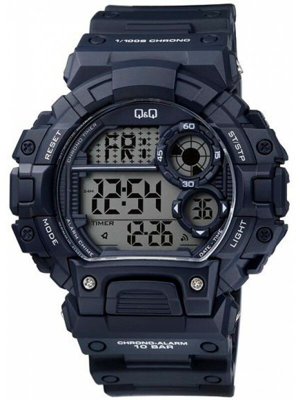 Лучшие цены. Мужские японские наручные часы Q&Q M144-002 [M144 J002Y]. Кварцевый механизм в высокой точностью +/-20 сек в месяц. Прочное пластиковое стекло обеспечит защиту часов от повреждений, разбить такое стекло очень сложно. Высокая водонепроницаемость 100WR (10 Бар) идеально подходит для плавания с маской и трубкой. Корпус часов сделан из высококачественного пластика. Ремешок из натурального полимерного материала с классической застежкой - это стильно, удобно и практично. Источник питания - батарейка. Магазины в вашем городе.
