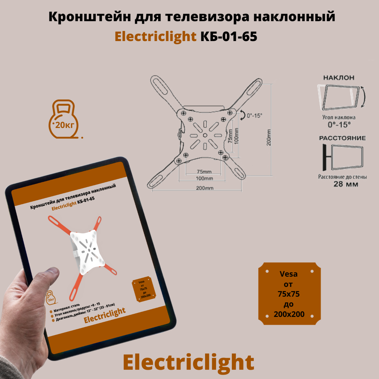 Кронштейн для ТВ ELECTRICLIGHT КБ-01-65 белый