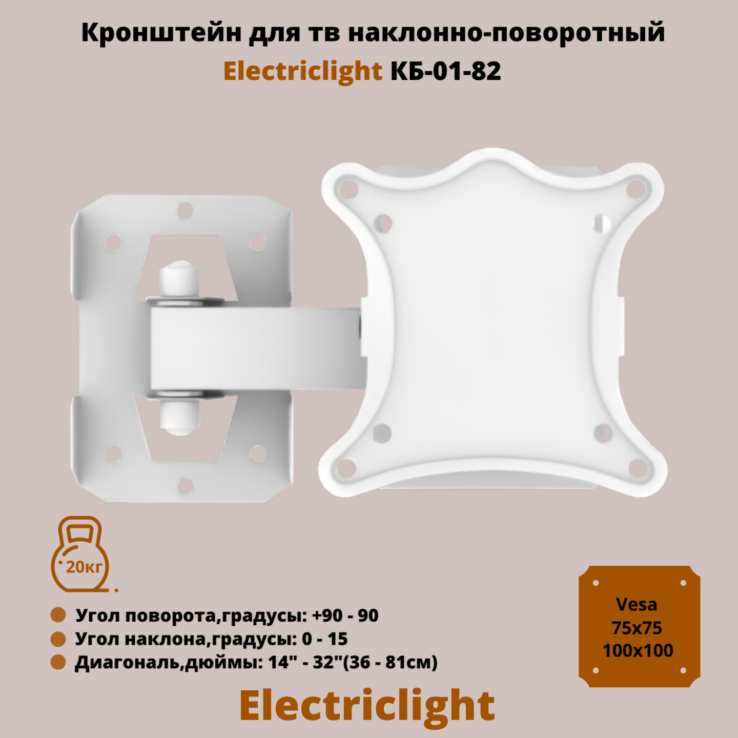 Подставки и крепления Кронштейн для телевизора на стену наклонно-поворотный с диагональю 14"-32" Electriclight КБ-01-82,белый