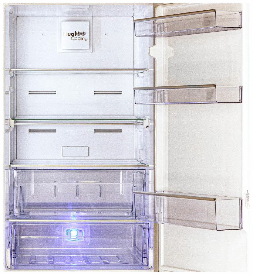 Лучшие цены. Двухкамерный холодильник с нижним расположением морозильной камеры Особенности: Технология BlueLight Сохранение витаминов в овощах и фруктах. Теперь овощи и фрукты хранятся дольше и сохраняют еще больше витаминов и полезных элементов благодаря технологии BlueLight. Голубой свет возобновляет процесс фотосинтеза и ваши овощи и фрукты остаются свежими на 30 дольше. Технология NoFrost Dual Cooling Предотвращение образования льда и смешивания запахов. Магазины в вашем городе.
