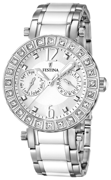 Лучшие цены. Оригинальные женские кварцевые наручные часы Festina Multifunction F16587.1. Полный комплект: часы, коробка, инструкция, гарантийный талон. Характеристики часов Бренд: Festina Тип: кварцевые Пол: женские Материал корпуса: нержавеющая сталь Материал браслета: нержавеющая сталь + керамика Коллекция: Multifunction. Магазины в вашем городе.