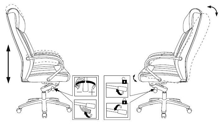 | Регулировки | степени жесткости качаниявысоты сиденьянаклона всего кресла |