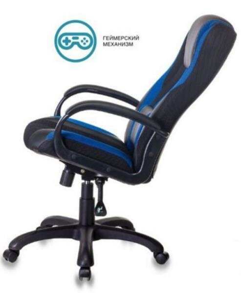 Лучшие цены. Тип: Кресло игровое; Материал обивки: ткань, искуственная кожа; Цвет обивки: чёрный, синий; Подлокотники: пластиковые; Механизм качания: с регулировкой по весу, с фиксацией в любом положении; Регулировка по высоте: газлифт; Вращение по горизонтали: да; Основание: крестовина с колёсиками; Ограничение по весу: 120 кг; Дополнительно: Крестовина - пластиковая; Размеры: (мм). Магазины в вашем городе.