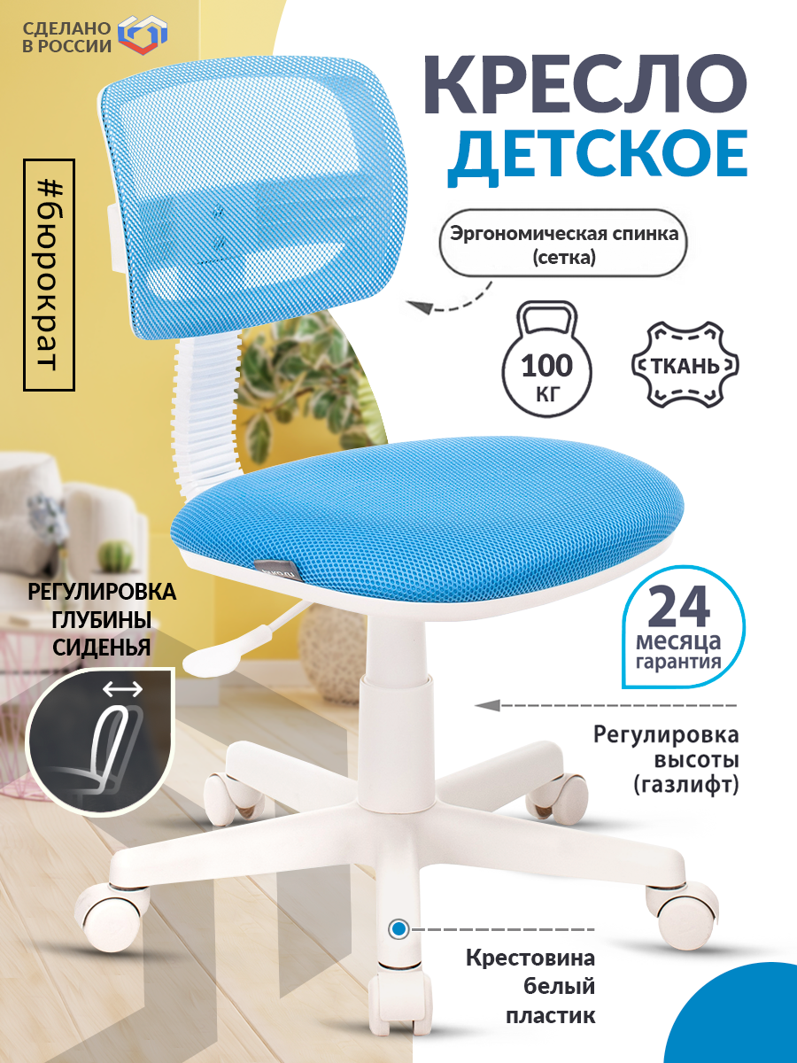 Кресло детское Бюрократ CH-W299/LB/TW-55 спинка сетка голубой TW-31 TW-55 (пластик белый) 5 290 ₽ Подробнее