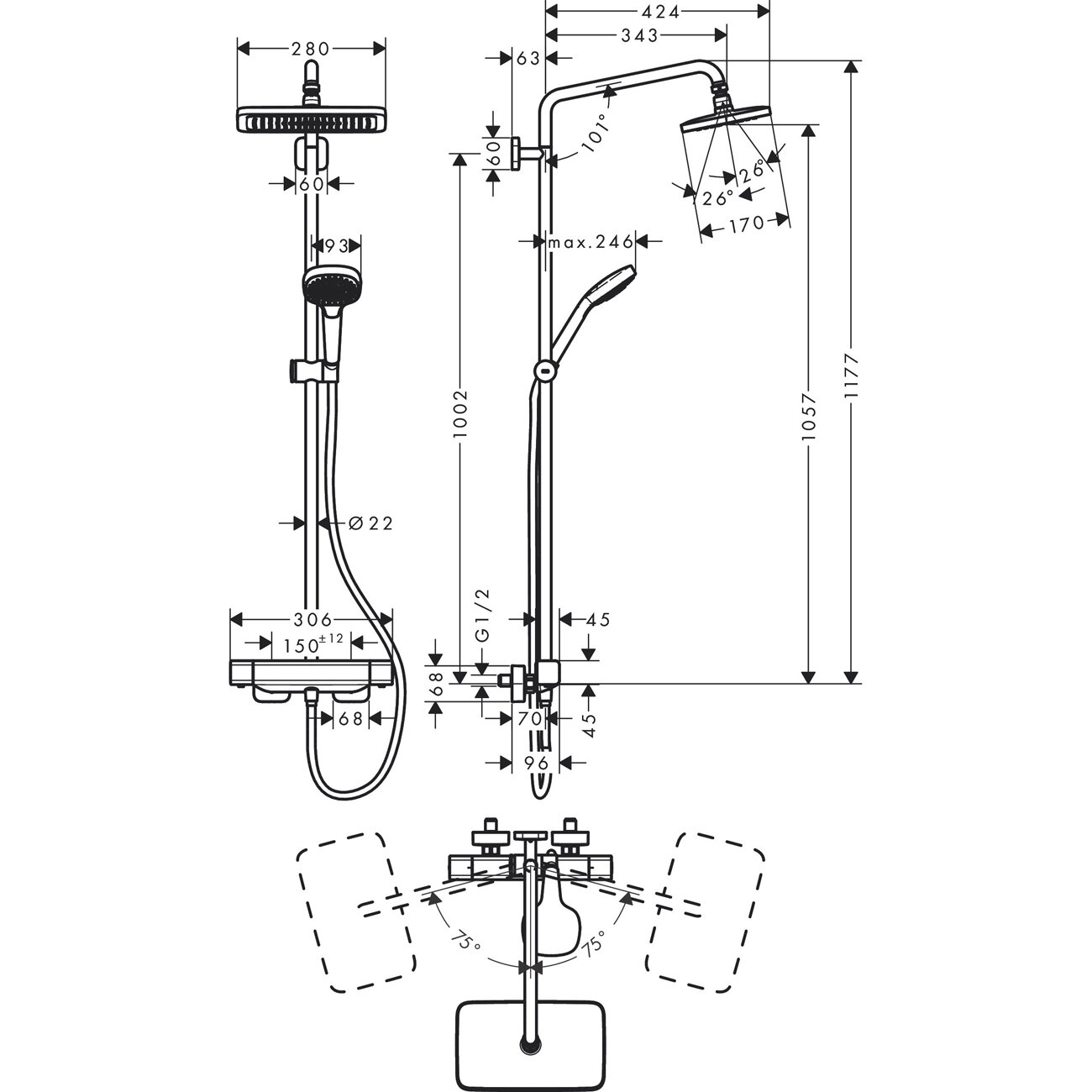 Душевая система HG Croma Select E 280 2 jet с термостатом 27630000