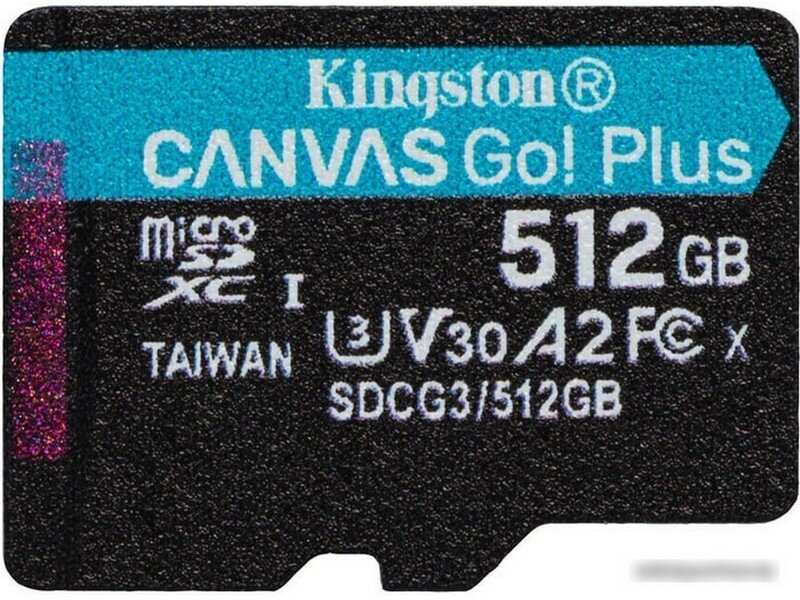 Карта памяти Kingston CANVAS Go! Plus - SDCG3/512GB - microSDXC UHS-I, U3, V30, A2 - 170/90МБ/с