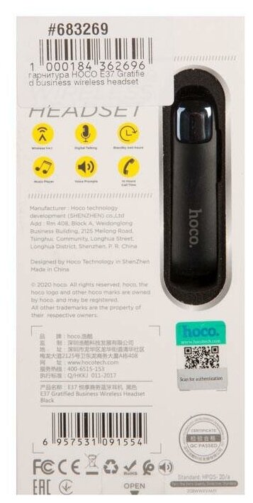 Гарнитура HOCO E37 Gratified business wireless headset, черный