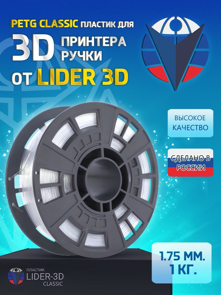 Пластик для 3D печати PETG пластик LIDER-3D Classic для 3D принтера 1.75 мм, Прозрачный, 1 кг