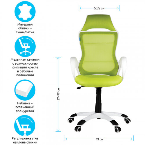 Кресло игровое Helmi HL-S05 "Podium", ткань сетка, салатовая, пластик белый (311369)