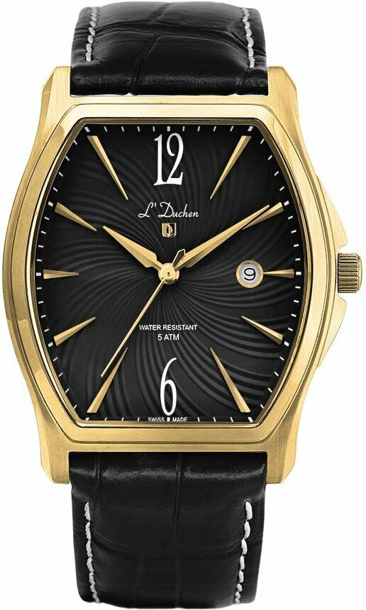 Лучшие цены. Классические мужские часы вдохновляют своей формой и элегантным сочетанием черного и золотого. Крупные цифры по вертикали циферблата и золотые продолговатые метки гармонично сочетаются с общим дизайном. Кожаный ремешок с тиснением под крокодила добавляет модели классический вид. Магазины в вашем городе.