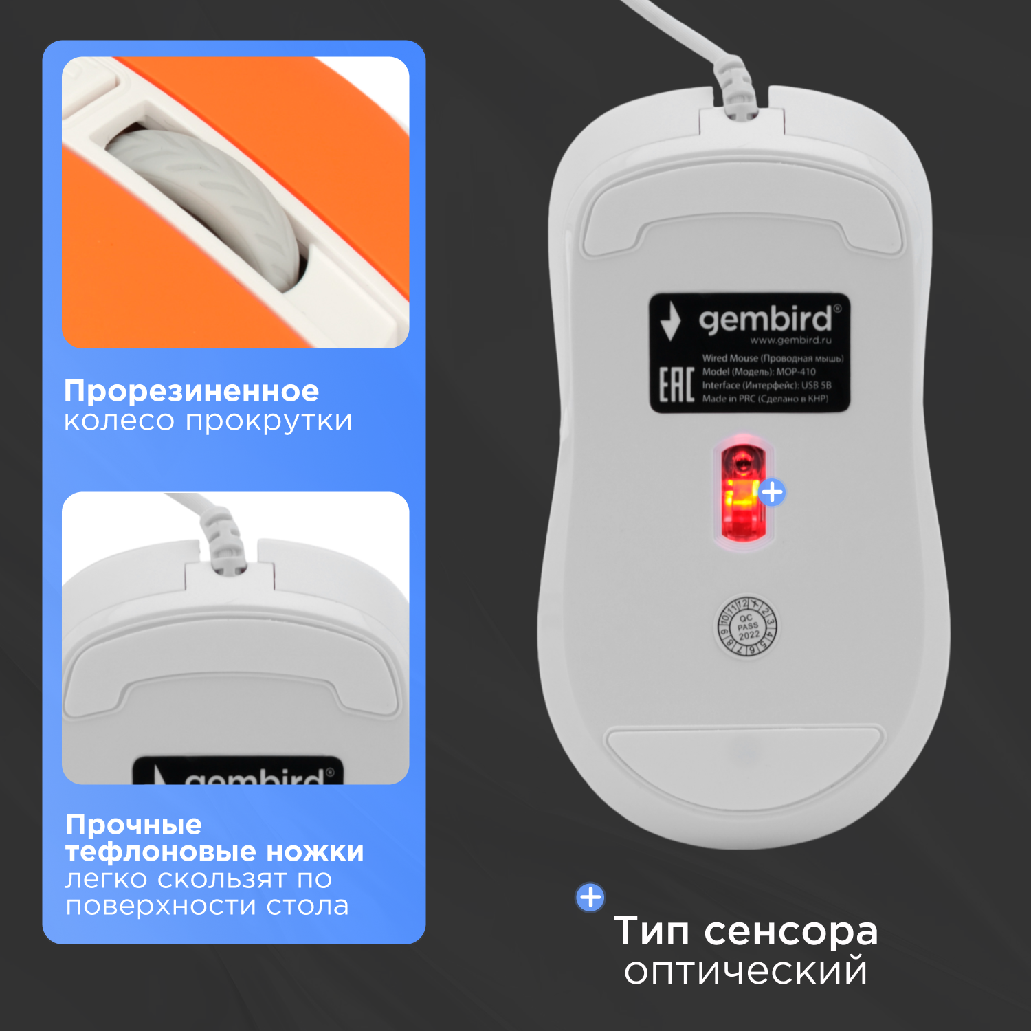Мышь GEMBIRD MOP-410-O оранжевый 260 ₽ Подробнее