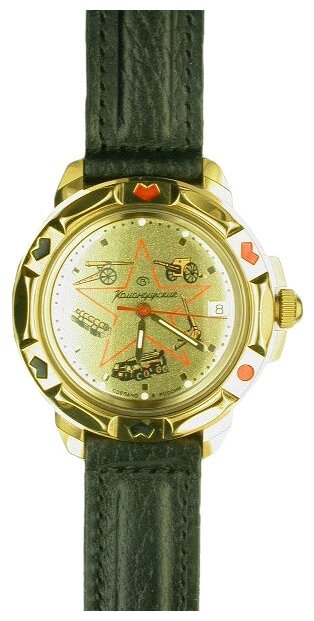 Лучшие цены. Мужские механические наручные часы Восток Командирские с круглым корпусом и кожаным ремешком. Точность хода обеспечивает механизм Восток 2414А калибра 24 мм с центральной секундной стрелкой. В механизме 17 камней. Противоударное устройство узла баланса. Запас хода не менее 36 часов. На циферблате присутствует апертура текущего числа. Поворачивающийся безель. Завинчивающаяся заводная головка с защитой. Корпус выполнен из часовой латуни с покрытием нитридом титана. Задняя крышка часов из нержавеющей стали. Магазины в вашем городе.