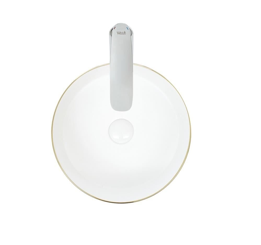 Лучшие цены. Форма: круглая, Ширина, см: 35.5, Глубина, см: 35.5, Высота, см: 12, Цвет: белый, золото, Поверхность: глянцевая, Стилистика дизайна: современный стиль, Материал: фаянс, Асимметричность: нет, Угловая конструкция: нет, Антибактериальное покрытие: есть, Антигрязевое покрытие: есть, Крепление: к столешнице, Дополнительные функции: антигрязевое покрытие, антибактериальное покрытие. Магазины в вашем городе.