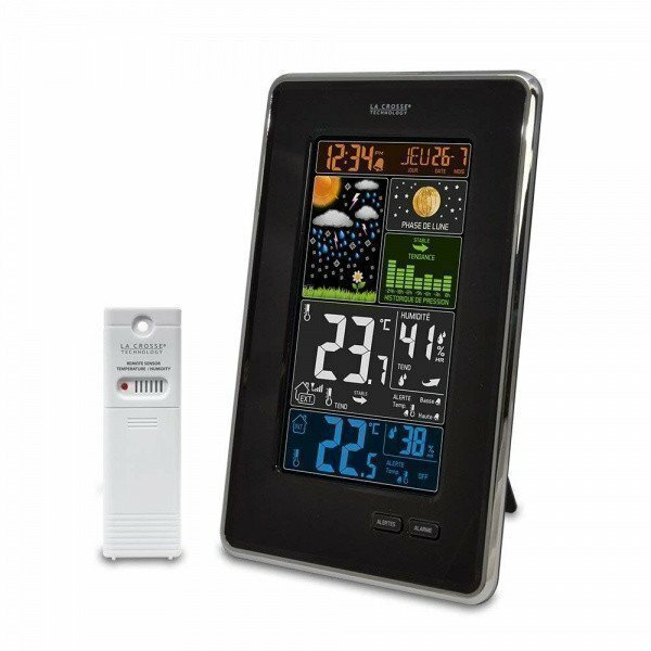 Лучшие цены. Домашняя метеостанция LaCrosse WS6835 простое в управлении и обслуживании, но очень эффективное и информативное устройство для отслеживания температуры, влажности в доме и за окном, а также для прогнозирования погоды и мониторинга изменения метеоданных. Метеостанция состоит из основного домашнего блока и внешнего беспроводного датчика. Беспроводной датчик устанавливается вне дома на расстоянии до 90 метров от основного блока. Основной блок оснащен ярким цветным цифровым дисплеем с подсветкой. Магазины в вашем городе.