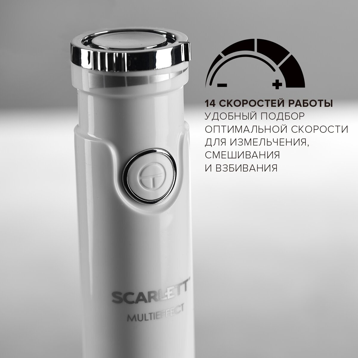 Лучшие цены. Погружной блендер Scarlett SC-HB42F91 оснащён мощным мотором 700 Вт, к нему прилагается мини-измельчитель и венчик, с помощью которых можно измельчать продукты, готовить тесто, взбивать крем, выполнять другие задачи. Погружная часть блендера изготовлена из прочной нержавеющей стали собственной марки STEEL PRO, диаметр корпуса уменьшен до 42 мм, благодаря чему прибор будет особенно хорошо лежать в ладони. 14 скоростных режимов позволяют выбрать оптимальную скорость для различных видов продуктов. Магазины в вашем городе.