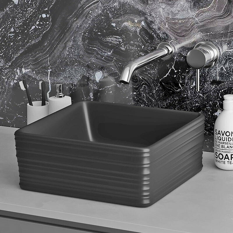 Раковина Grossman GR-3026BM (39,5x39,5x15) чёрная матовая накладная прямоугольная